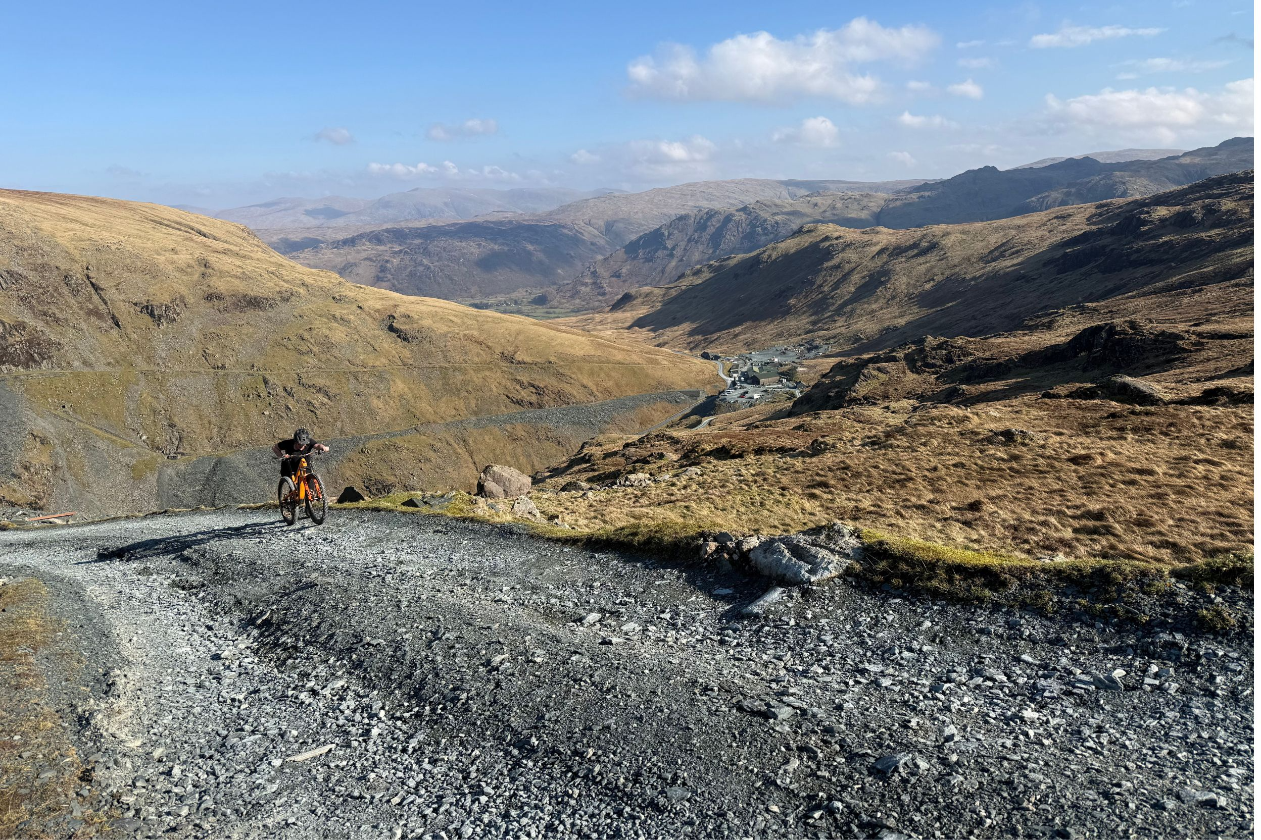 Rosthwaite is a lovely little hamlet and home to several pubs - including the awesome Yew Tree which dates from 1628 - and a couple of cafes too. Seatoller, just 2km down the road, also has food and drink stops which are perfect for refuelling before the gruelling uphill grind to come. The climb up Honister Pass doesn’t take long to show its teeth either, hitting 20% as soon as you leave Seatoller. If this first ramp is enough to tell you that your legs have had enough, this is the point to take the shorter option back to Grange. It’s still a great ride and still starts with a 130m rocky off road hoik up on the bridleway that peels off to the right at this point.
