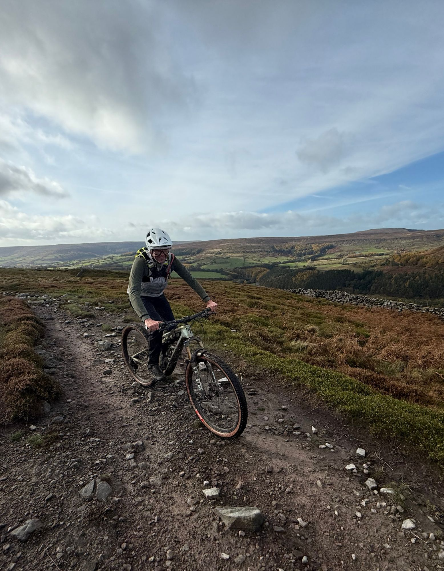 Despite it being an almost identical 100m vertical gain to the first climb, this always seems the easier one. The first bit is a steep challenge up to the field gate, then however far up the stone section, and then left hand singletrack fork afterwards. Then it’s almost certainly a short bit of hike a bike up a notch in the hillside before you pop onto the plateau. Here a really nice bit of gradually climbing singletrack takes you back onto the ridgeline of Cold Moor, and south to the awesome Chop Gate descent again.